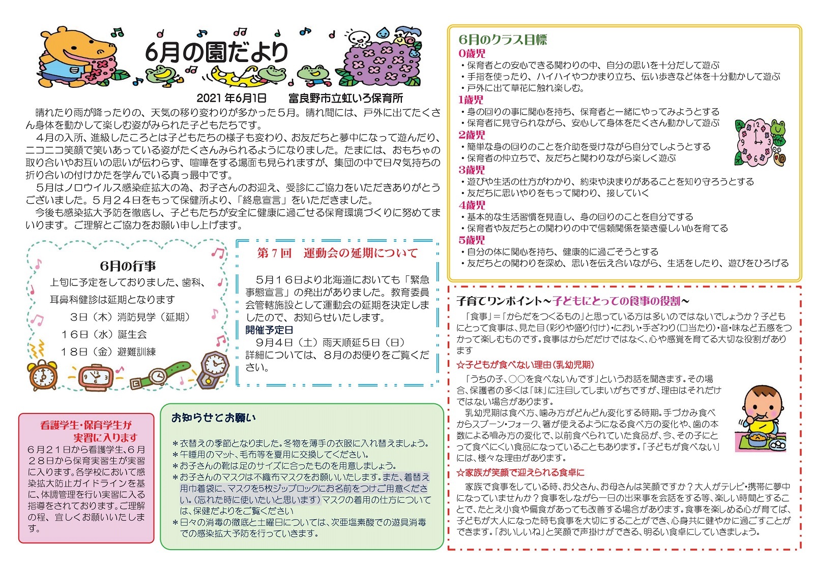 虹いろ保育所 園だより(令和3年6月1日発行)(363KB)