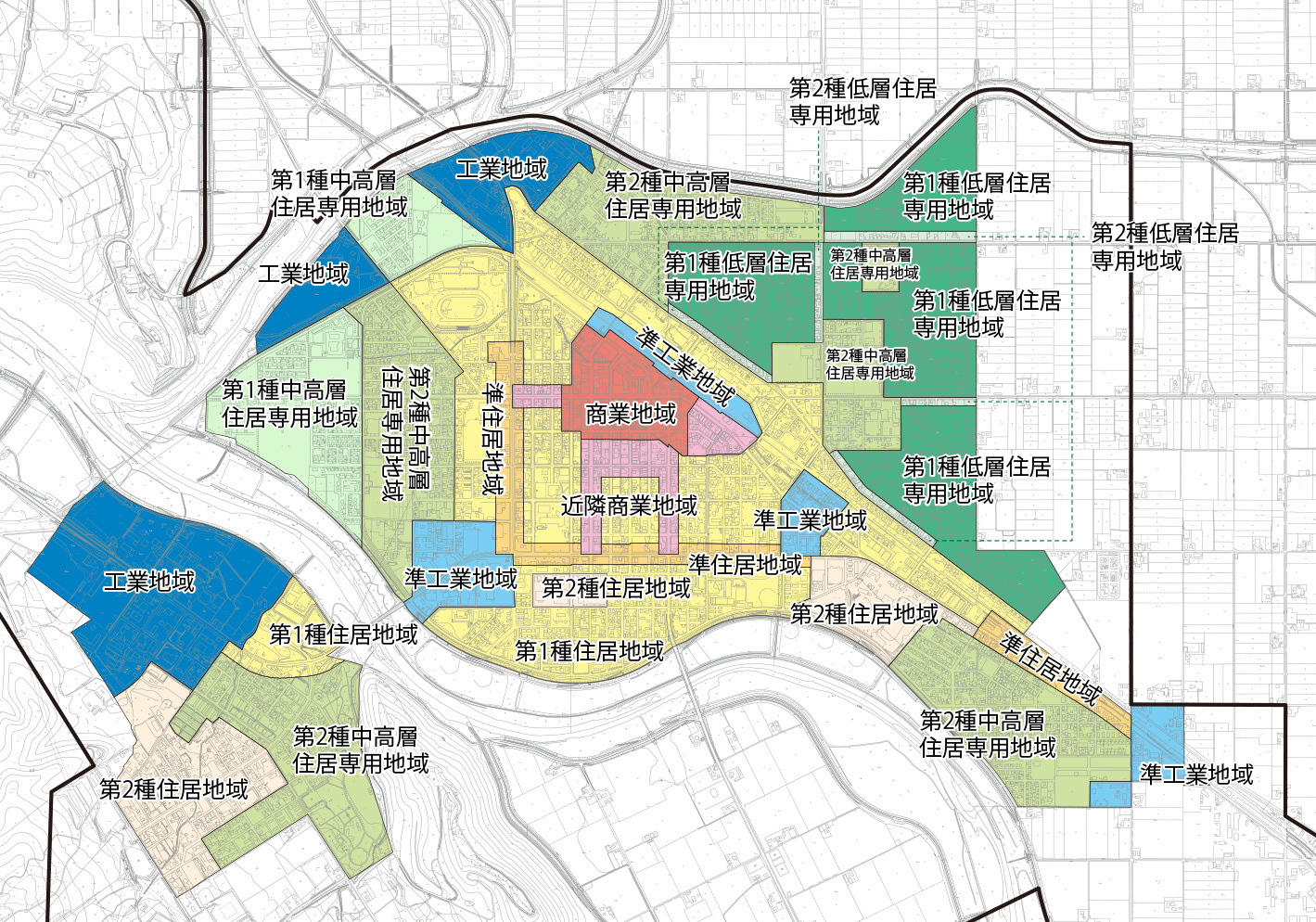 | 準工業地域 | 29ヘクタール | 5.1% | 10分の6 以下 |