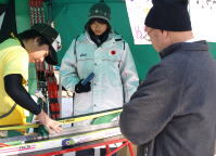 当日はとても天気が良く,春を間近に感じることができました。今年は200名を超える参加者が来て下さり,会場はとてもにぎわいました。 | スタート前には,中学生がスキーのワックスを無料で塗るブースも作成し,多くの方に利用していただきました。「ありがとう」の一言がとても暖かく心に響きました。 | |||||||